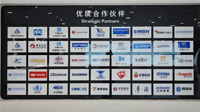 我国铝业东北轻合金、PPG、我国建筑第八工程局、山东万事达、卓宝科技、亨特道格拉斯、西蒙铝业、七色建材、方大集团、中南铝业西南铝业、魏桥集团、我国建筑第二工程局、多维联合、巨星铭创、上海蒲飞尔金属吊顶有限公司、山东领航新材料、中南钢构、森特士兴、阿克苏、威士伯、我国铁建等。